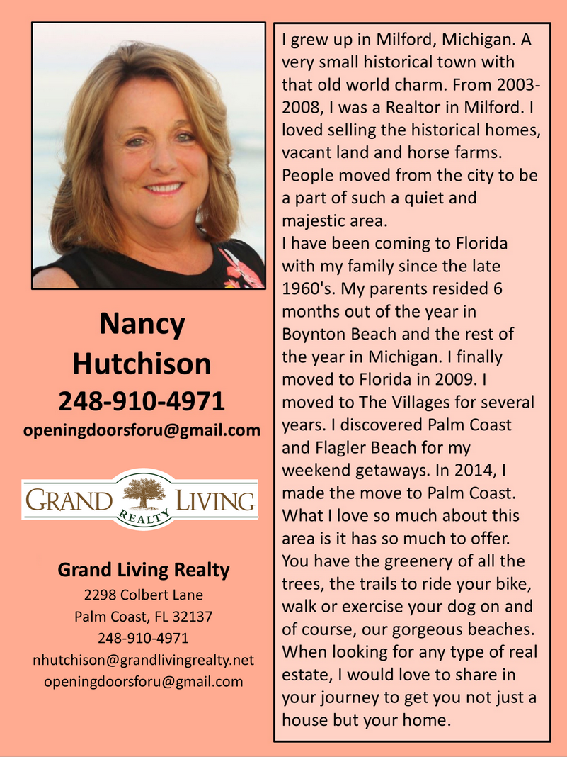 About Nancy Hutchison Palm Coast Realtor - Nancy Hutchison Realtor with Realty Exchange Palm Coast