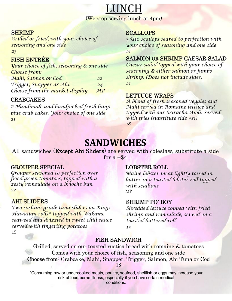 We Only Serve Fresh Food, So Our Menu Changes, Check Back Often.